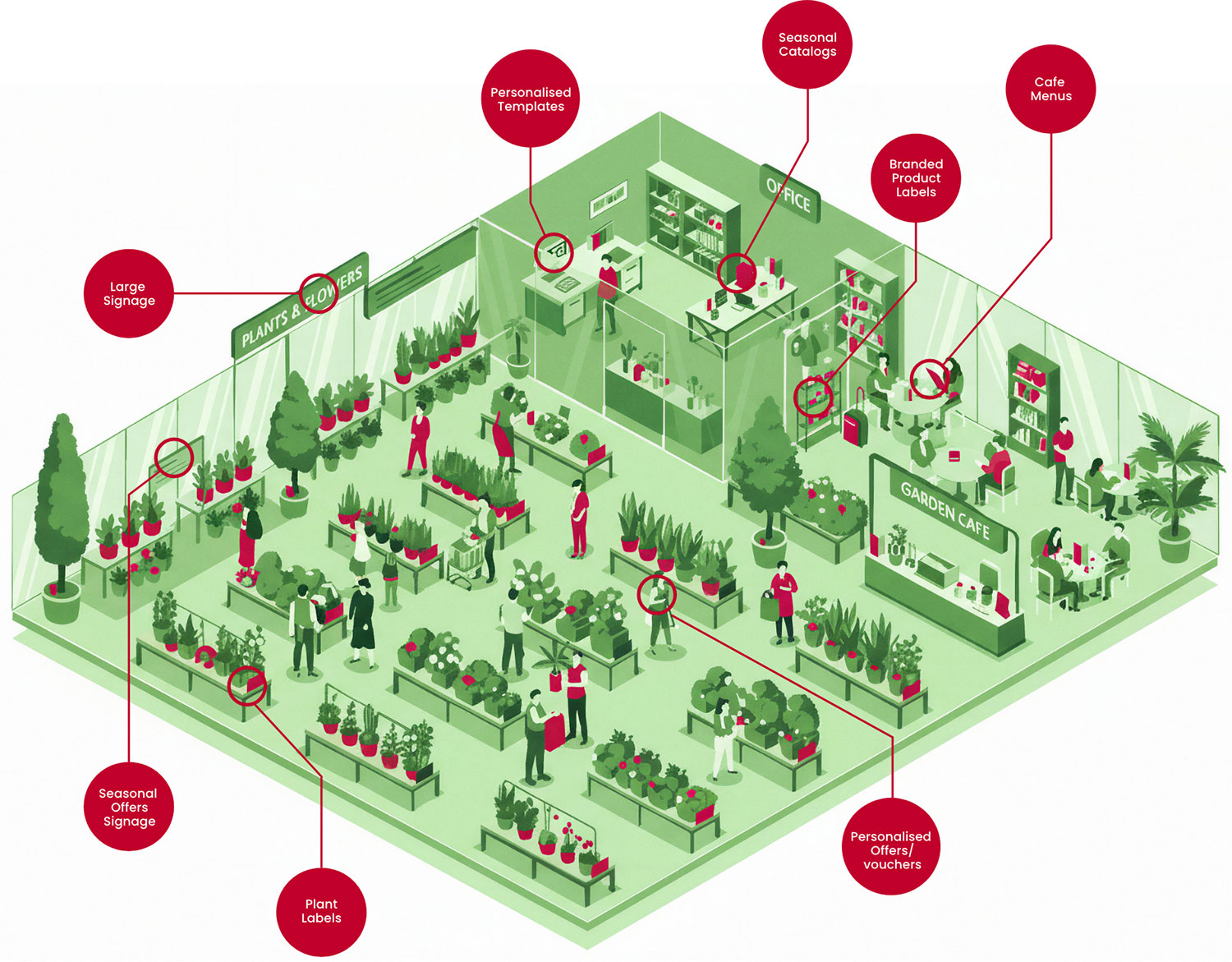 It helps garden centre groups manage campaigns, templates, and reorders in one place, giving head office control and local teams the freedom to act fast. Drive footfall and repeat visits by keeping every seasonal offer consistent across sites.